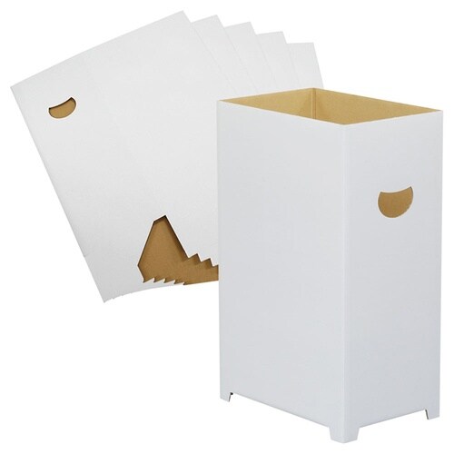 45リットルのゴミ袋に対応し、どこでも使えるシンプルなデザインです。組み立てが簡単で、使用後は資源ゴミとしてリサイクル可能。イベントや一時的な使用にもおすすめです。 |