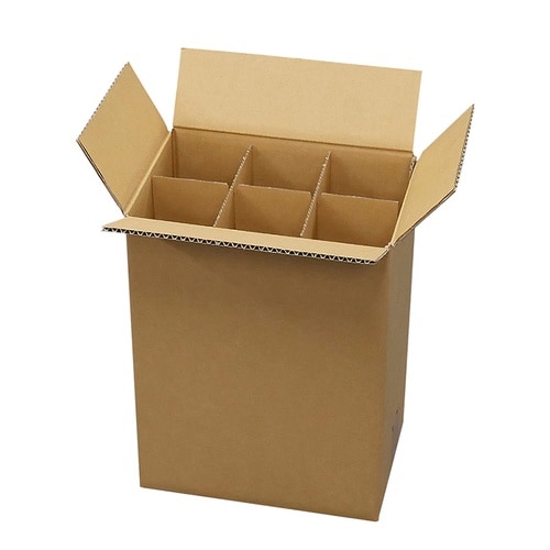ワインボトル用ダンボール箱です。ヤマト宅急便やゆうパックなどの宅配100サイズに対応。セットの組仕切りでボトルをしっかり固定し、ワインボトルを6本収納することができます。 |