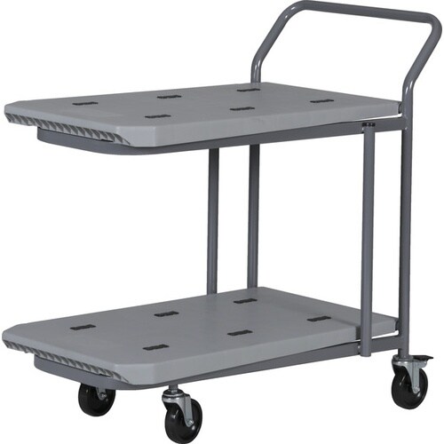 ネスティングできる台車です。台車後方から差し入れるだけで簡単にネスティングでき、保管スペースを有効活用できます。 |