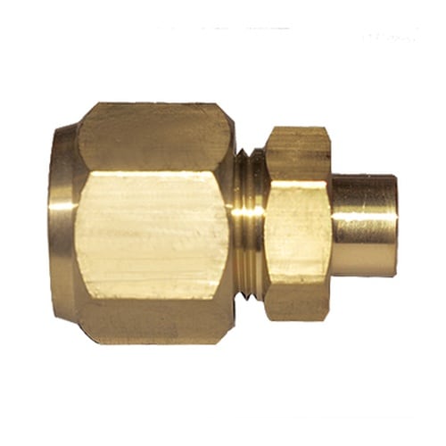 冷媒用のフレアージョイントです。□本体・フレアーナットで構成されており、銅管をフレアリングツールで押し拡げ(45度)、本体面に密着させて接続します。□冷媒配管など気密性の高い用途に使用
