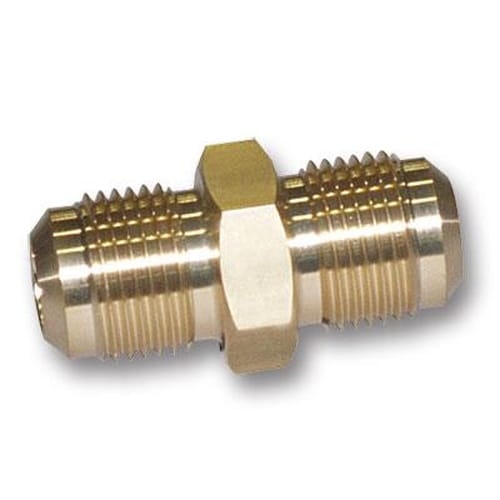冷媒用のフレアージョイントです。□本体・フレアーナットで構成されており、銅管をフレアリングツールで押し拡げ(45度)、本体面に密着させて接続します。□冷媒配管など気密性の高い用途に使用 |