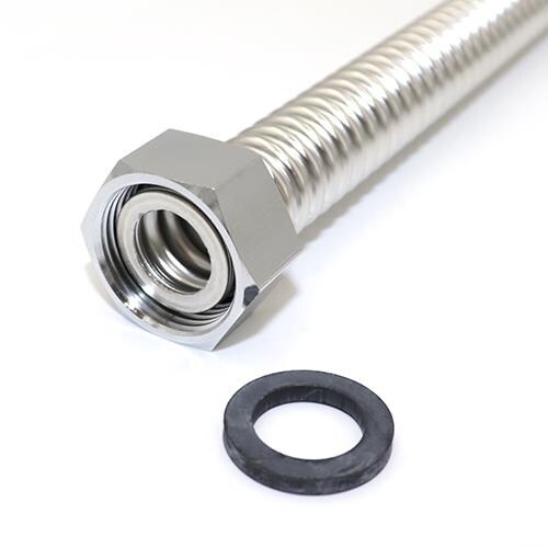 日本水道協会認証品シール付最高使用圧力:1MPa連続使用温度:80℃瞬間で100℃まで使用流体・用途:冷温水、冷却水、給水、給湯フレキパイプ:SUS304相当ナット:黄銅クロムメッキパッキン:EPDM