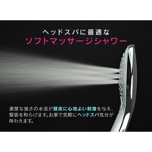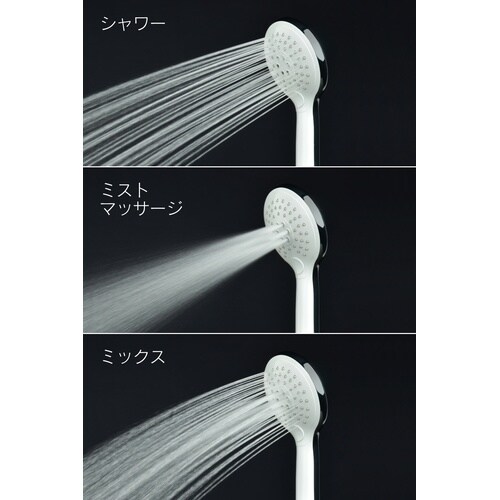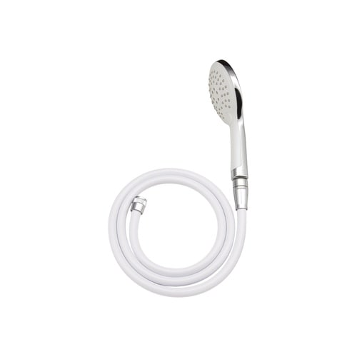 白とメッキのバイカラー色を取り入れた、デザイン性のあるボタン式の切替シャワーヘッドです。