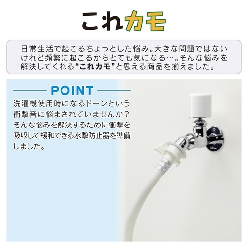水撃を吸収して不快な衝撃音を緩和する水栓上部です。 |