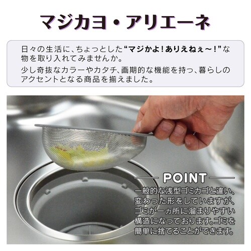 直径144ミリのキッチンシンク用浅型ゴミカゴです。