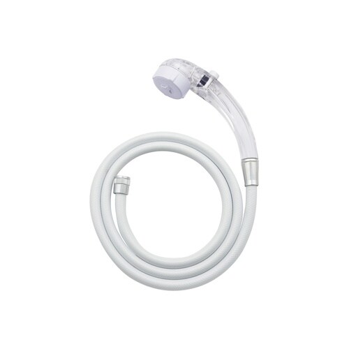 遊び心を持たせたクリアタイプで節水・低水圧に対応した止水機能つきのシャワーヘッドとホースのセット。 |