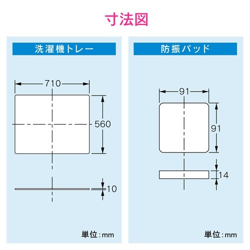 二槽式洗濯機用のトレーと振動を緩和する防振パッド(4枚入り)のセットです。 |