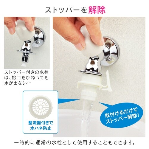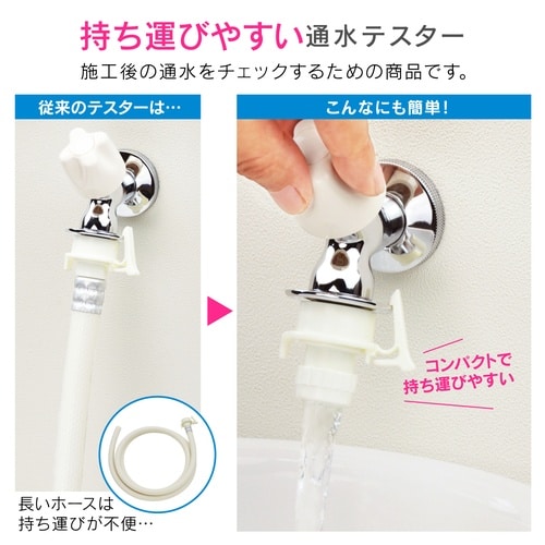 自動閉止機構(ストッパー)つきの水栓や洗濯機用ニップルに接続し、通水テストが行えるテスターです。 |