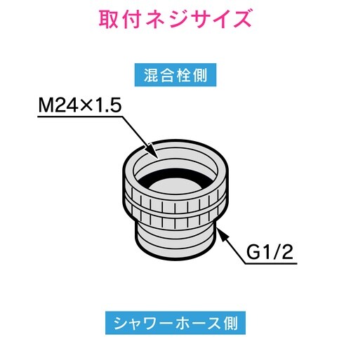 GAONA・KAKUDAIなどのシャワーホースとTOTOの混合栓(樹脂エルボ)を接続するアダプター |