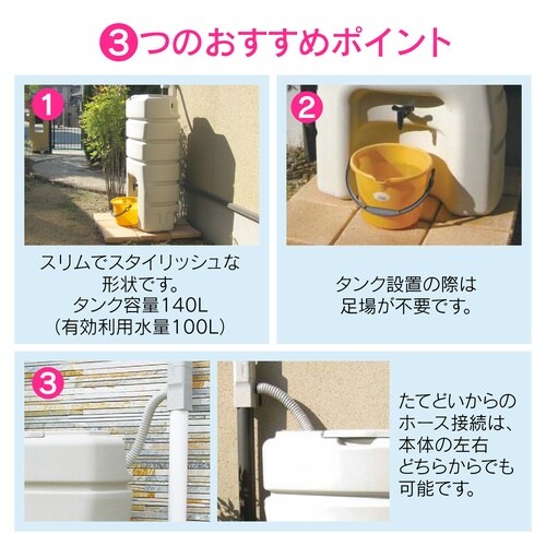 雨どいから雨水を集めて、貯めることができるタンクです。 |
