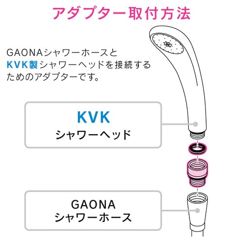 GAONA・KAKUDAIなどのシャワーホースとKVKのシャワーヘッドを接続するアダプターです。 |