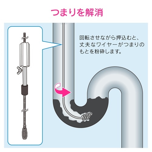 排水管のつまりを解消するワイヤー式パイプクリーナーです。 |