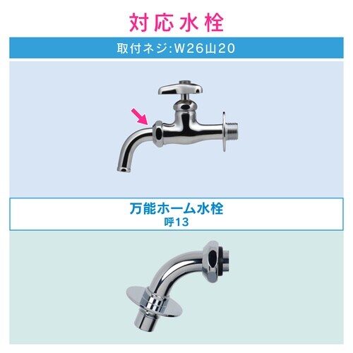 水栓と洗濯機給水ホースをワンタッチで接続できるニップルです。 |
