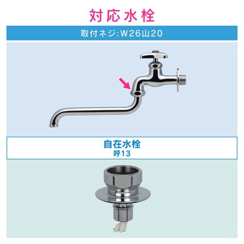 水栓と洗濯機給水ホースをワンタッチで接続できるニップルです。 |