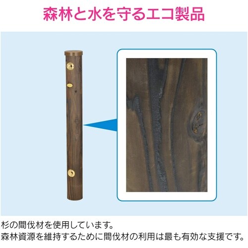 落ち着いた木目の天然木を使用した水栓柱(高さ約900ミリ)です。 |