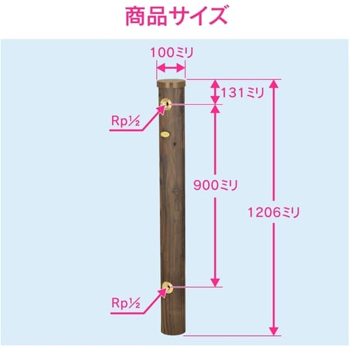 落ち着いた木目の天然木を使用した水栓柱(高さ約1200ミリ)です。 |