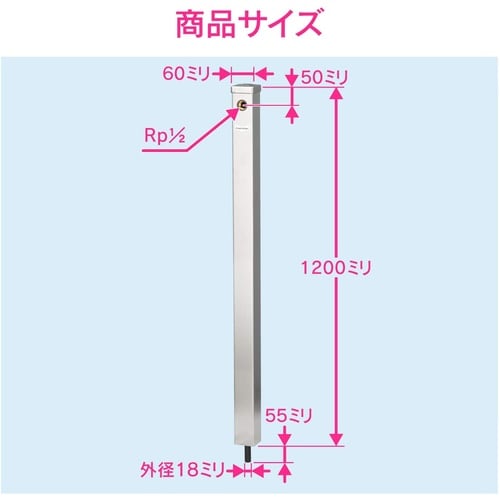 シンプルなデザインのステンレス水栓柱(高さ1200ミリ・対辺60ミリ)です。 |