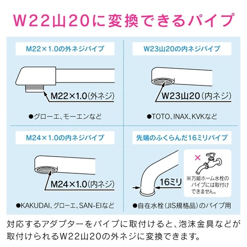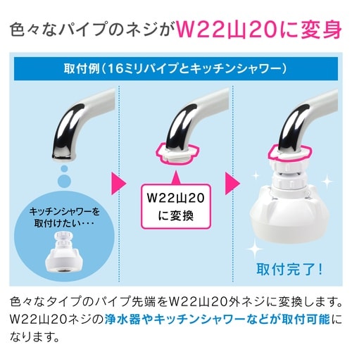パイプの先端をW22山20のネジに変換するアダプターセットです。 |