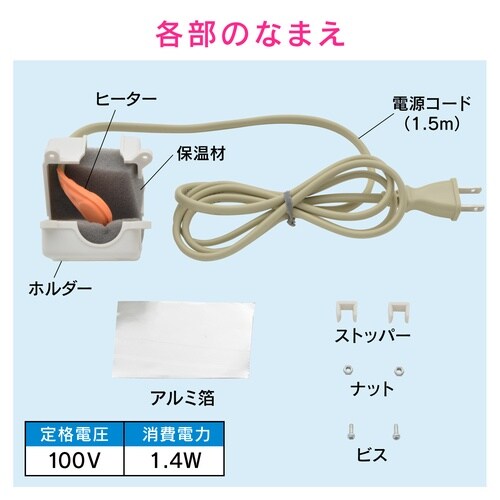 屋外にある水栓(蛇口)などの凍結を防止するヒーターです。 |