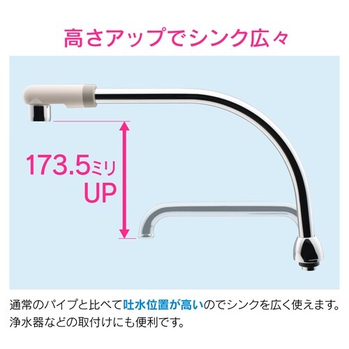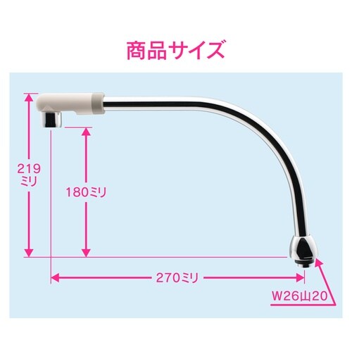 流し台を広く使うことができる、長さ270ミリの蛇口用交換パイプです。 |