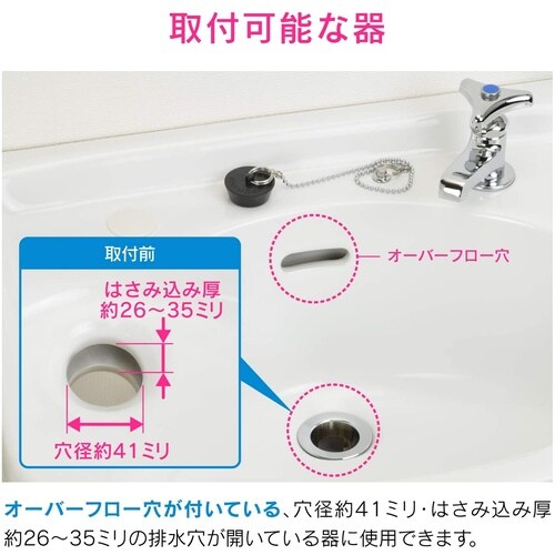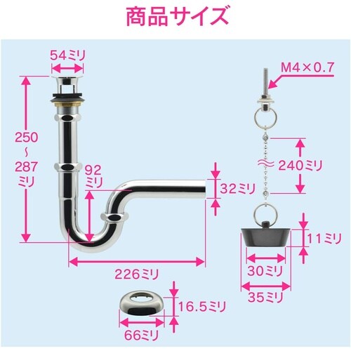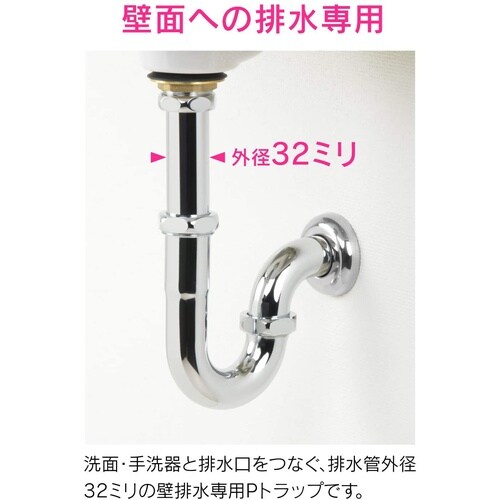 32ミリ規格のオーバーフロー付き洗面・手洗器用金属製排水トラップです。 |