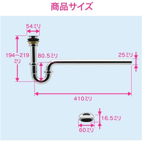 25ミリ規格の洗面・手洗器用金属製排水トラップです。