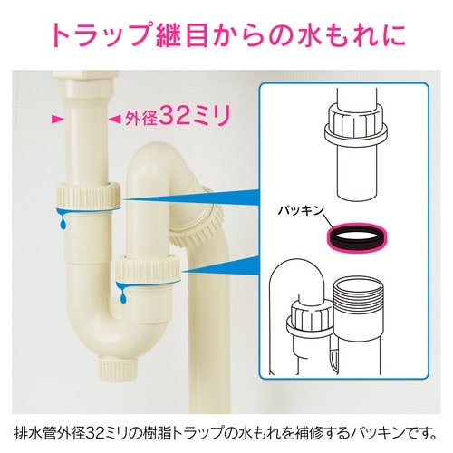 樹脂排管ナット部からの水もれを補修できるパッキンです。 |