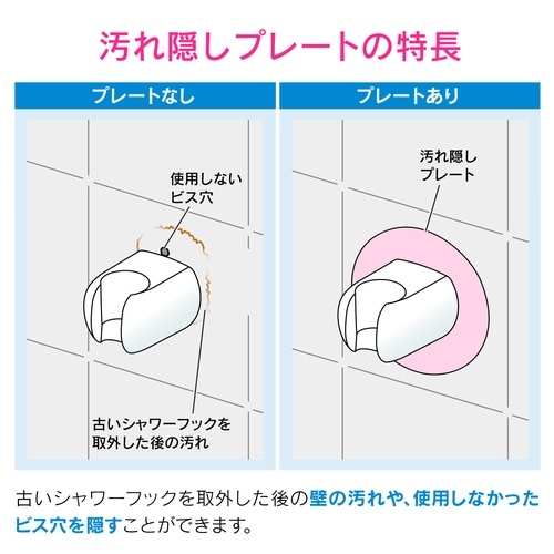 既設のシャワーフックを取外した後の壁のビス穴や汚れを隠すプレート(直径80ミリ)です。 |