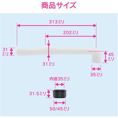 洗濯機の真下に排水口がある場合に排水ホースを接続するための排水パイプセットです。 |