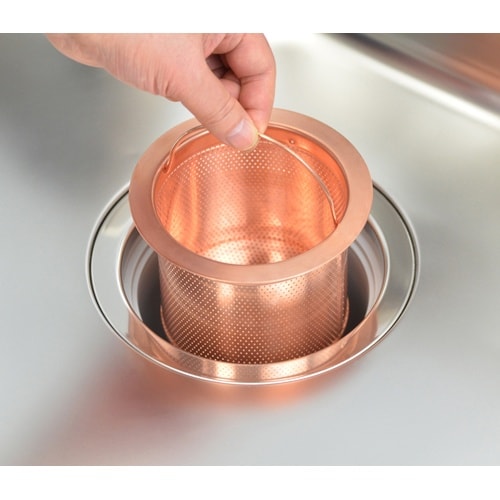 直径135ミリのキッチンシンク用銅製深型ゴミカゴです。 |