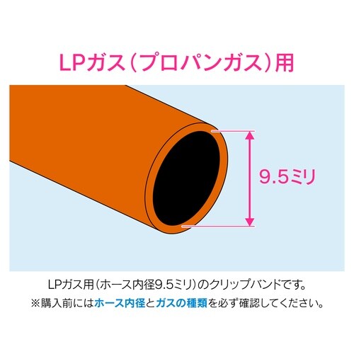 LPガス用ゴム管(内径9.5ミリ)のホースバンド2個入りです。 |