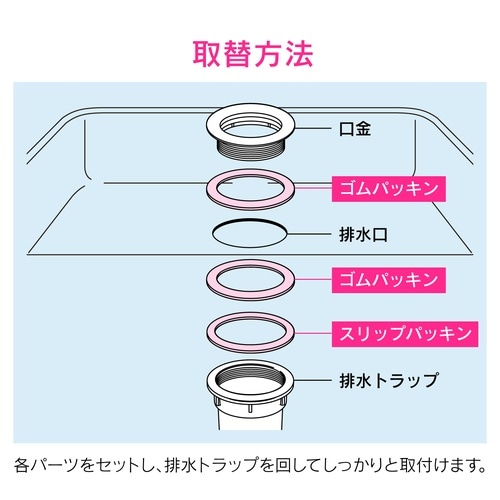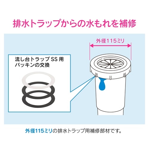 排水口径11.5センチの流し台排水トラップを補修するパッキンセットです。 |