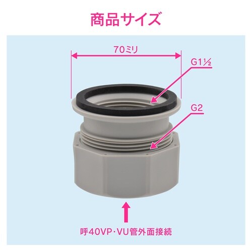 排水トラップのG11/2ネジと呼40塩ビ管を接続するアダプターです。 |