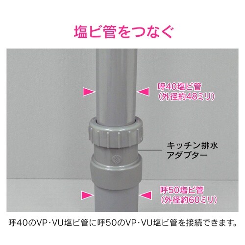 呼40塩ビ管に呼50塩ビ管を接続するためのアダプターです。 |