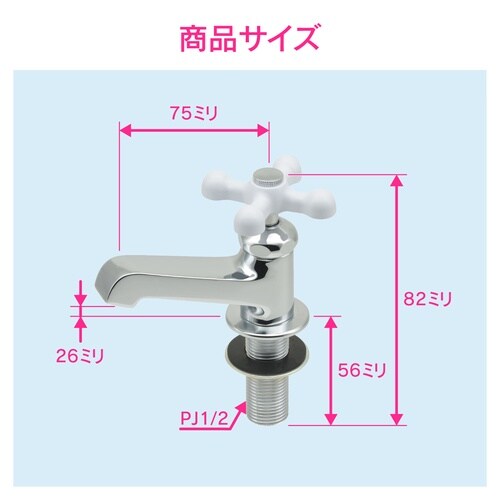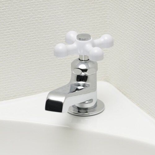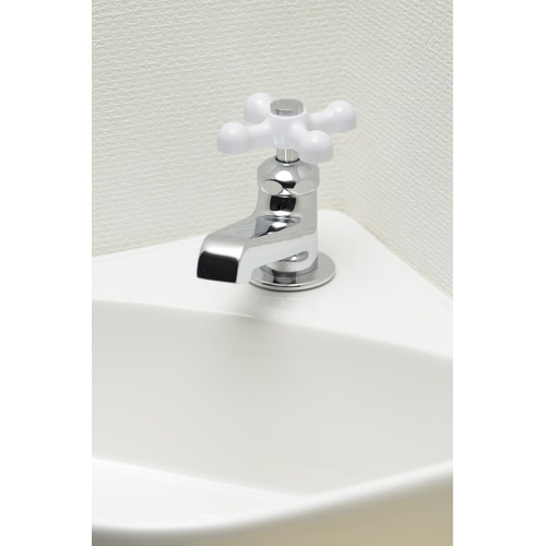 ホワイトクロスハンドルがオシャレな呼13の立水栓(単水栓)です。 |