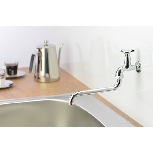花のようなハンドルが付いたオシャレな単水栓(自在水栓)です。 |