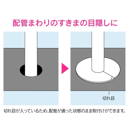 壁面や床の配管貫通穴を隠す化粧プレートです。