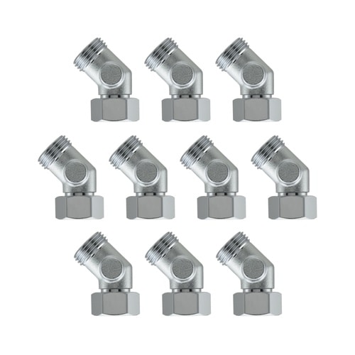 止水栓回りの配管の角度調整に便利な、片方がナット付きの45°エルボの10個入りです。 |