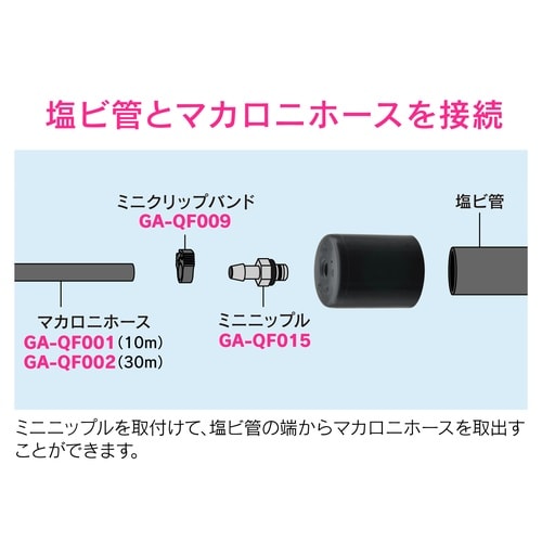 マカロニホースを呼20の塩ビ管に接続できるキャップです。 |