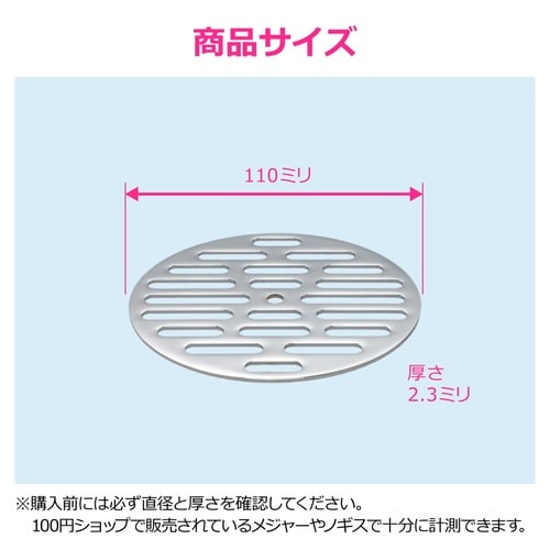 商品サイズ(約):直径/110mm、厚さ/2.3mm | パッケージサイズ(約):奥行/111mm、幅/115mm、高さ/3mm | パッケージ重量(…