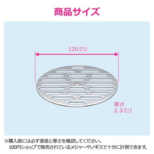 商品サイズ(約):直径/120mm、厚さ/2.3mm | パッケージサイズ(約):奥行/121mm、幅/125mm、高さ/3mm | パッケージ重量(…