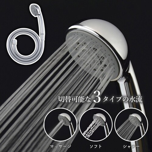 クロームの多機能シャワーヘッドとホース(シルバー)のセット。 |