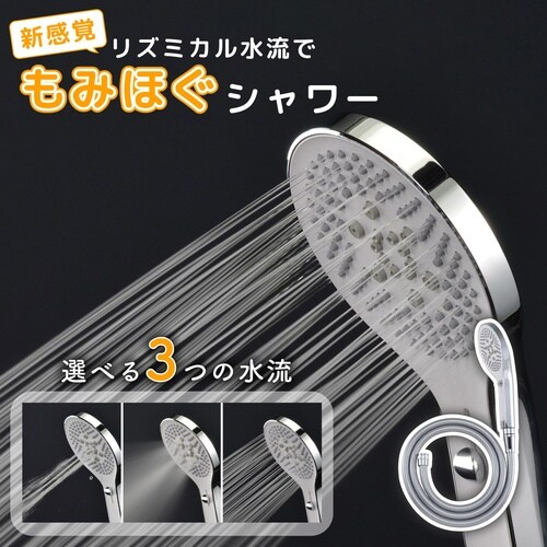 薄型の多機能シャワーヘッドとホース(シルバー)のセット。 |