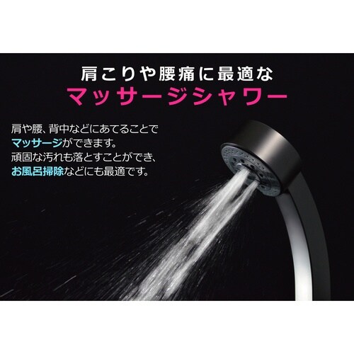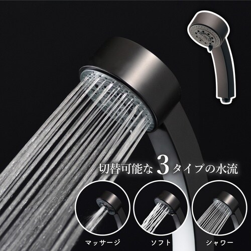 水流を3段階に切替えできる、マットブラックがかっこいいシャワーヘッド。 |