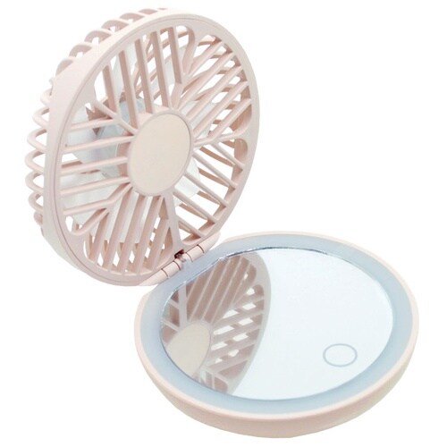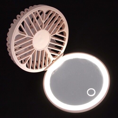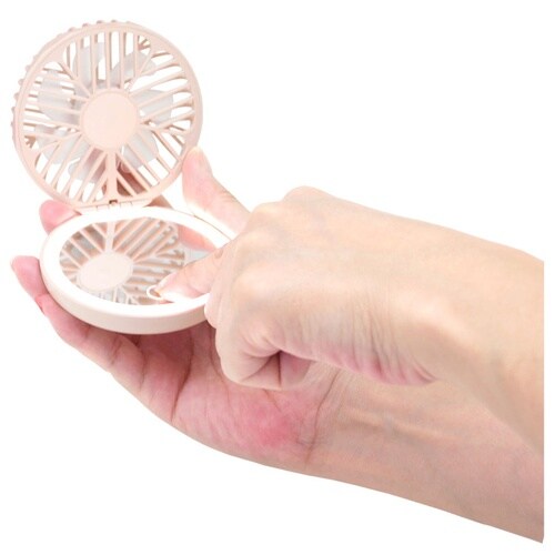 ミラーが付いたコンパクトの様なかわいい携帯用ファン。 |