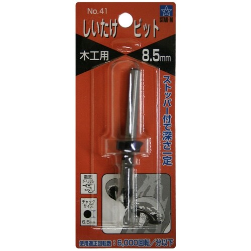適用材:しいたけ原木 | 材質:普通鋼 | 適用機種:電気ドリル | 適正回転数:10,000回転/分以下 | サイズ:8.5mm | 全長:75mm…