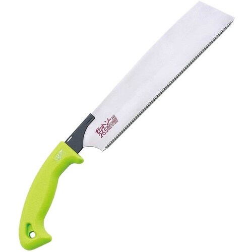 横挽き用です。定番サイズの「ゼットソー265」にピストル型の柄を装着しました。 |