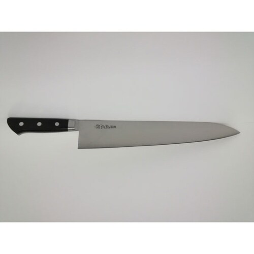 切れ味の持続性に優れた、正広オリジナルの炭素鋼(純日本鋼)を使用しました。本格仕上の牛刀です。 |