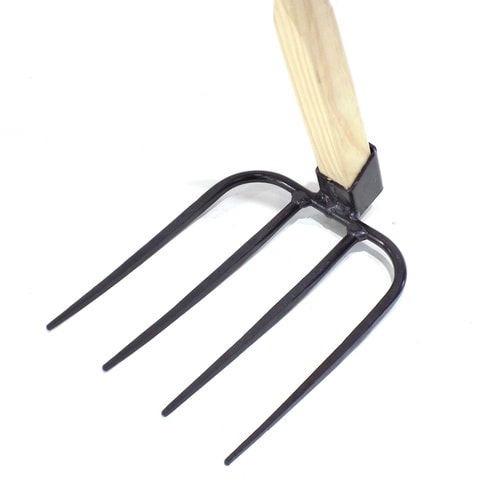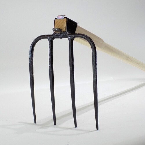 堆肥の切り替えしに使う四本爪の軽い鍬。 |