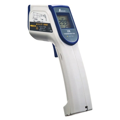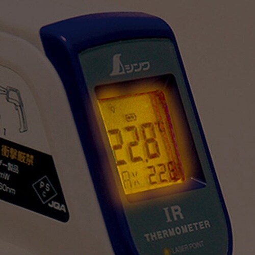 測定物に触れる事なく瞬時に温度を測定する放射温度計。 |
